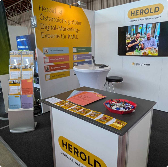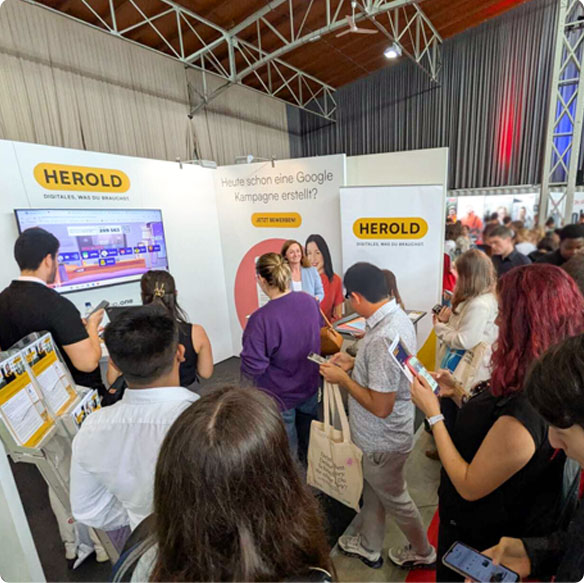 Beim Online-Karrieretag zeigte Herold, warum es als Arbeitgeber begeistert. Am Messestand erfuhren Besucher:innen alles über Karrieremöglichkeiten und die besonderen Vorteile des Unternehmens.
