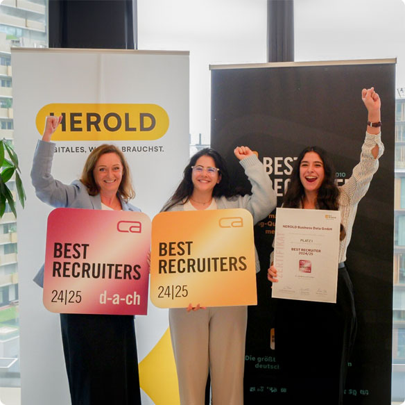 Platz 1 von über 1.400 getesteten Unternehmen & Institutionen – Herold sichert sich den Gesamtsieg bei der BEST-RECRUITERS-Studie 2024/25 und damit den Titel Top-Recruiter im gesamten D-A-CH-Raum.