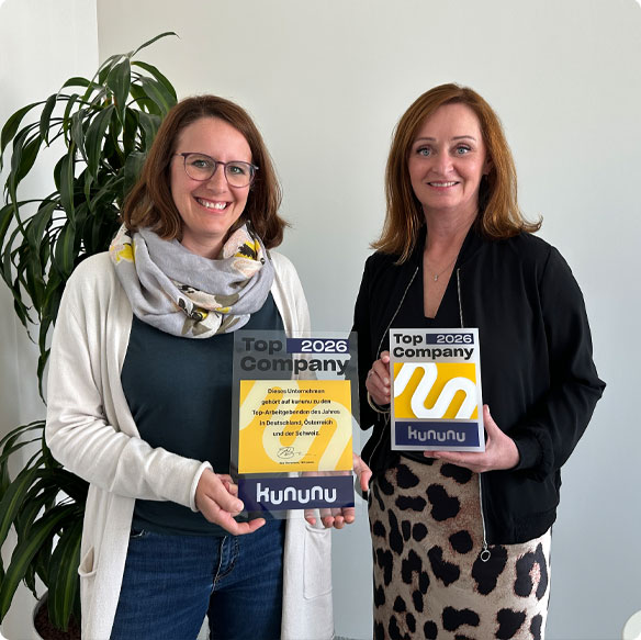 Wir freuen uns, 2026 mit dem kununu Top Company-Siegel ausgezeichnet worden zu sein. Diese Anerkennung basiert ausschließlich auf unabhängigen Bewertungen unserer Mitarbeitenden & genau das macht sie für uns so besonders.